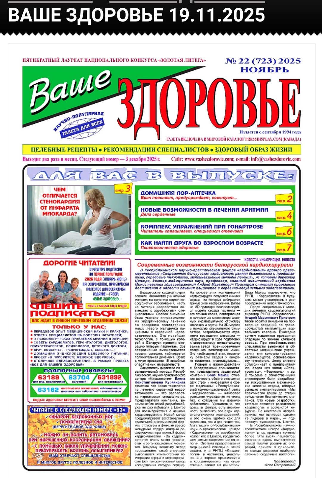 "Прививка от отита. Миф или реальность" Газета "Ваше здоровье" №22 от 19.11.2025, врач оториноларинголог Столярова И.С.