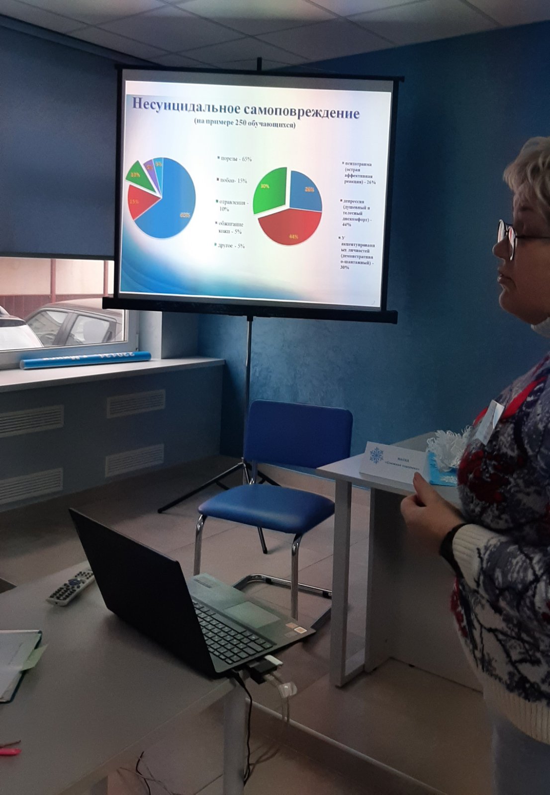 Психолог Центра, дружественного подросткам «Ювентус», Гирис Т.В. рассказала подробно о мотивах и причинах суицидального поведения, а главное — о симптомах, на которые медработникам необходимо обращать внимание при консультировании маленьких пациентов.