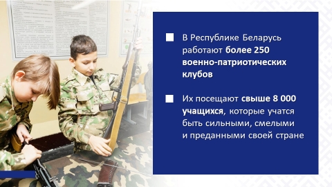 С этой целью в Беларуси реализуется комплекс разноплановых мероприятий: республиканская героико-патриотическая акция «Великой Победе – 80!», Всебелорусская молодежная экспедиция «Маршрутами памяти. Маршрутами единства», Республиканский проект «Беларусь: до и после», Республиканский семейный марафон «Семья победителя», «Вахта Памяти», Республиканский многоступенчатый патриотический проект «Цветы Великой Победы» и десятки других патриотических акций.