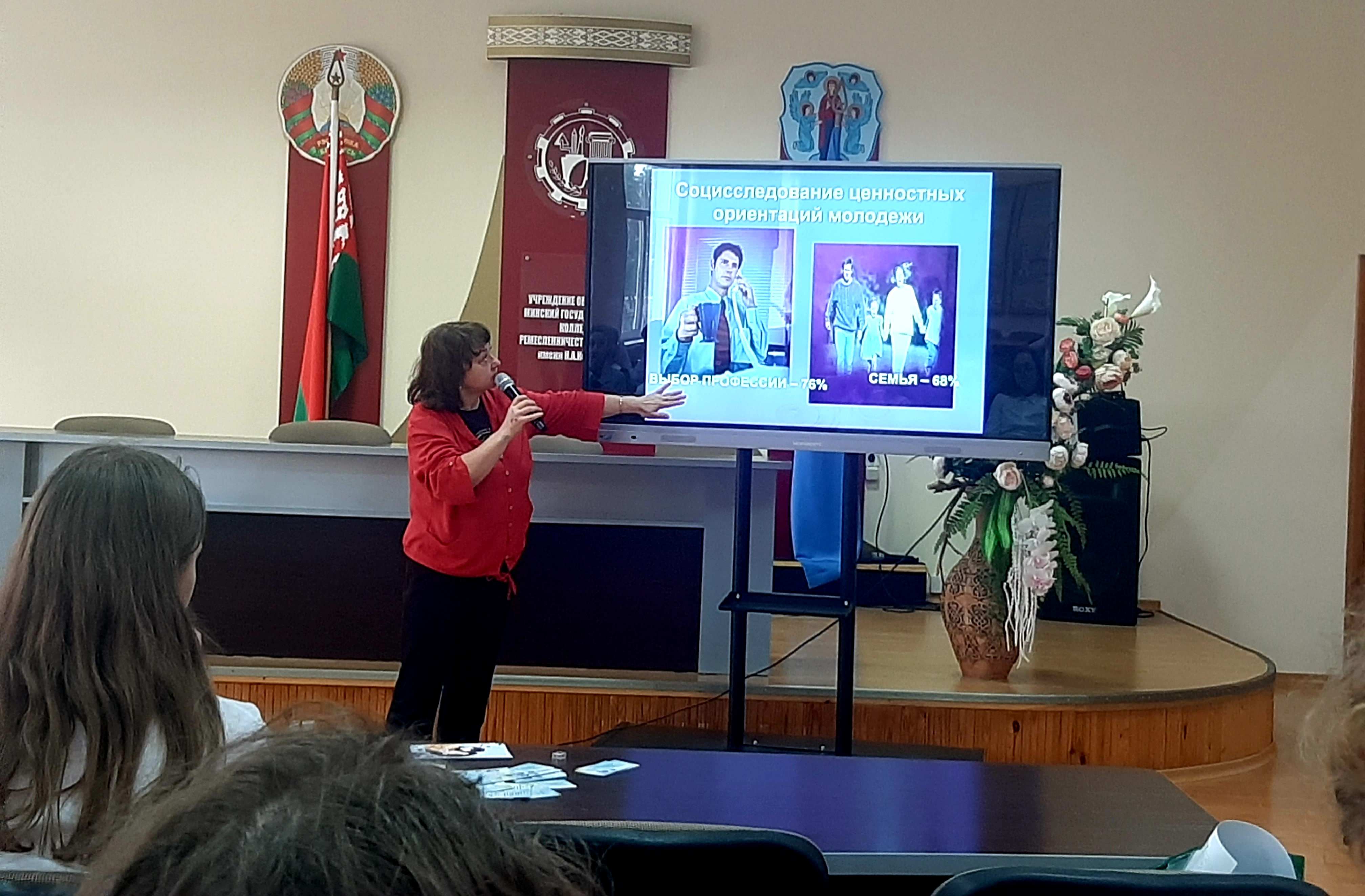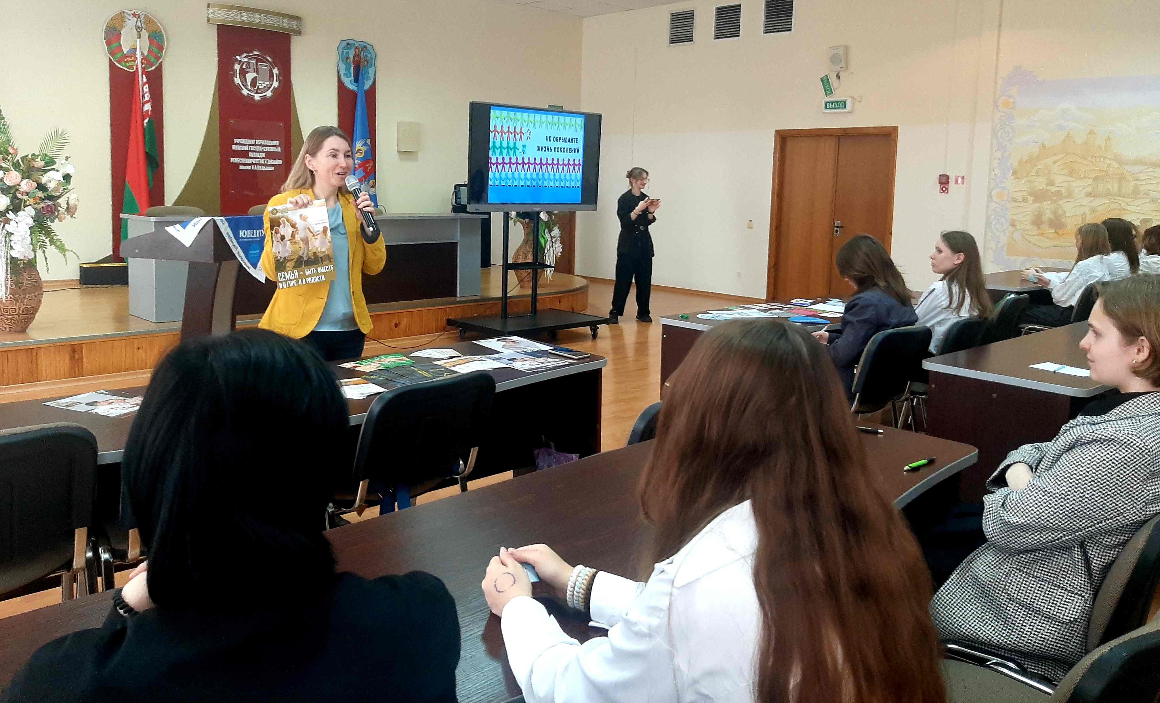 14.10.2025 в рамках Недели родительской любви, Дня Матери и Дня Отца, сотрудничества Благотворительного фонда поддержки семьи и материнства "Покров" и ЦДП "ЮВЕНТУС" на базе УО "МГК ремесленничества и дизайна имени Н.А.Кедышко" состоялась диалоговая площадка по теме: "Нравственные, духовные, семейные ценности молодежи, повышение имиджа семьи", которую провели врач по медицинской профилактике, координатор ЦДП Палазник И.А. и сотрудник фонда Плютова О.М.