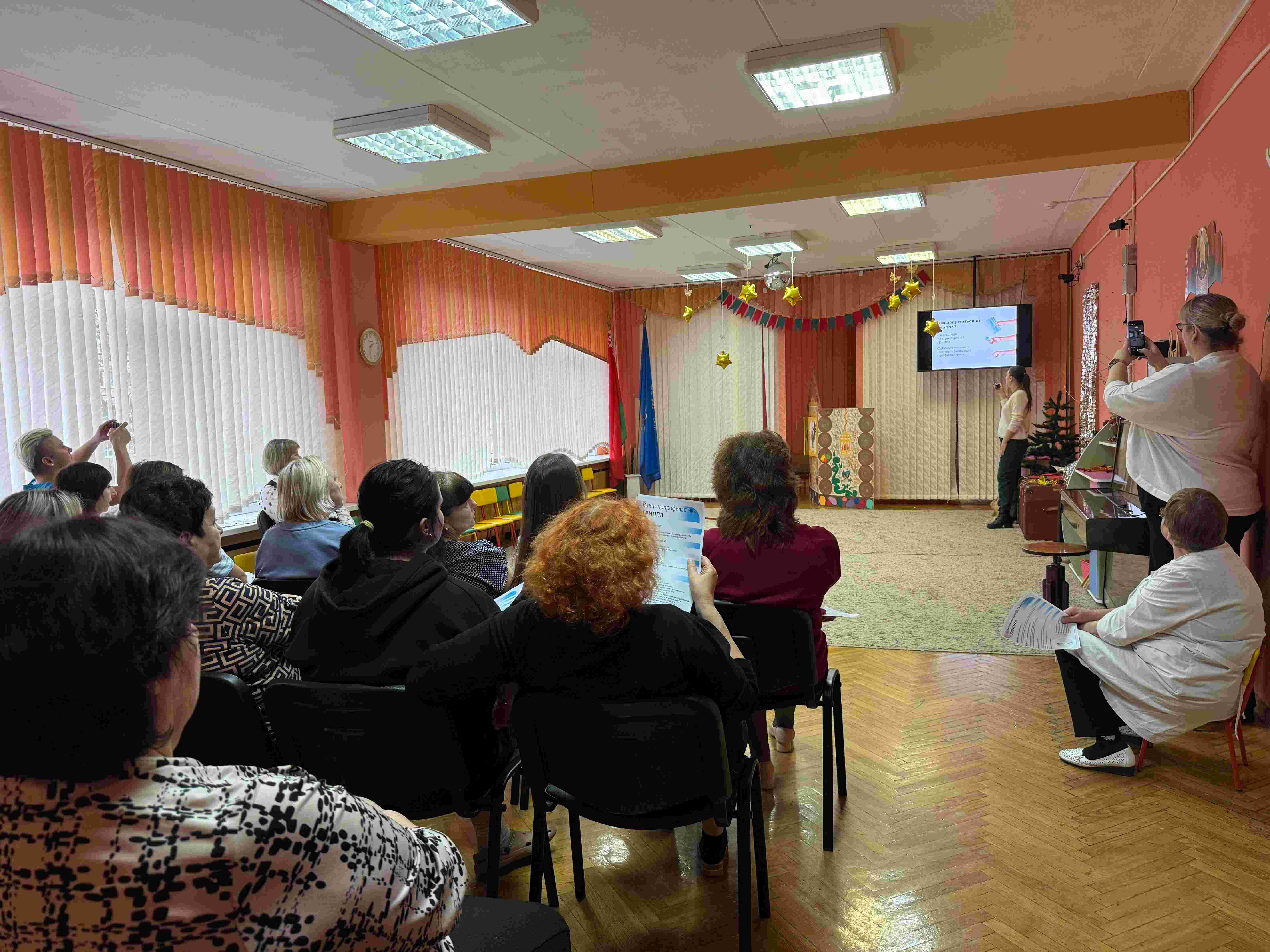 Заведующий педиатрическим отделением №3, врач-педиатр Гаврина И.В. проводит информационную работу по вакцинопрофилактике от гриппа среди сотрудников детских садов
