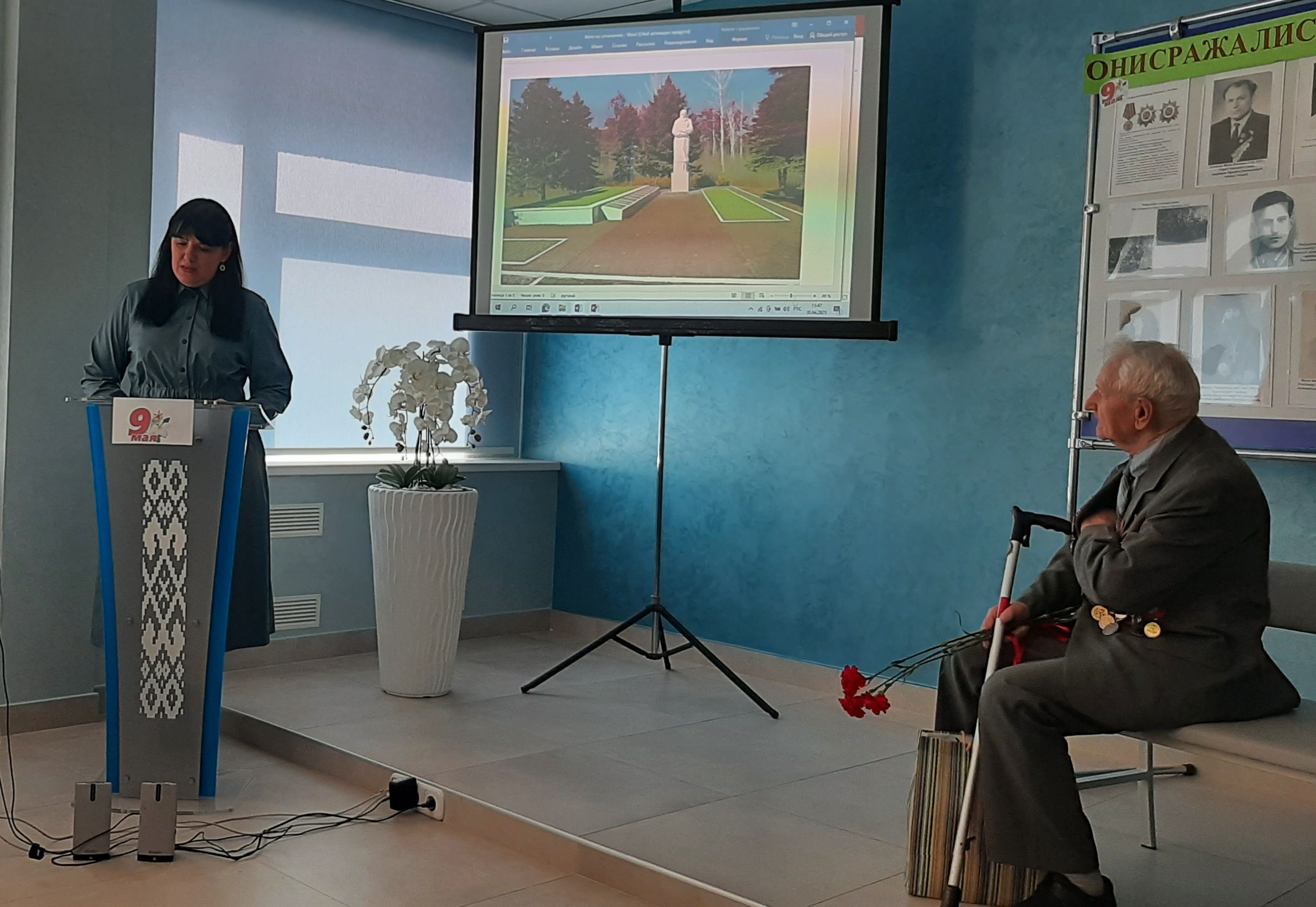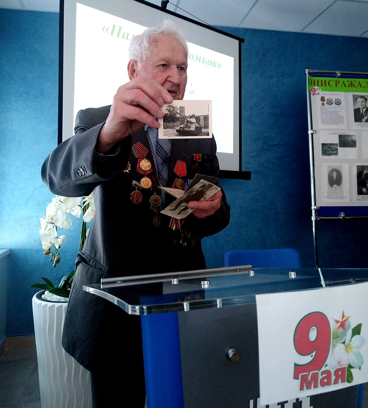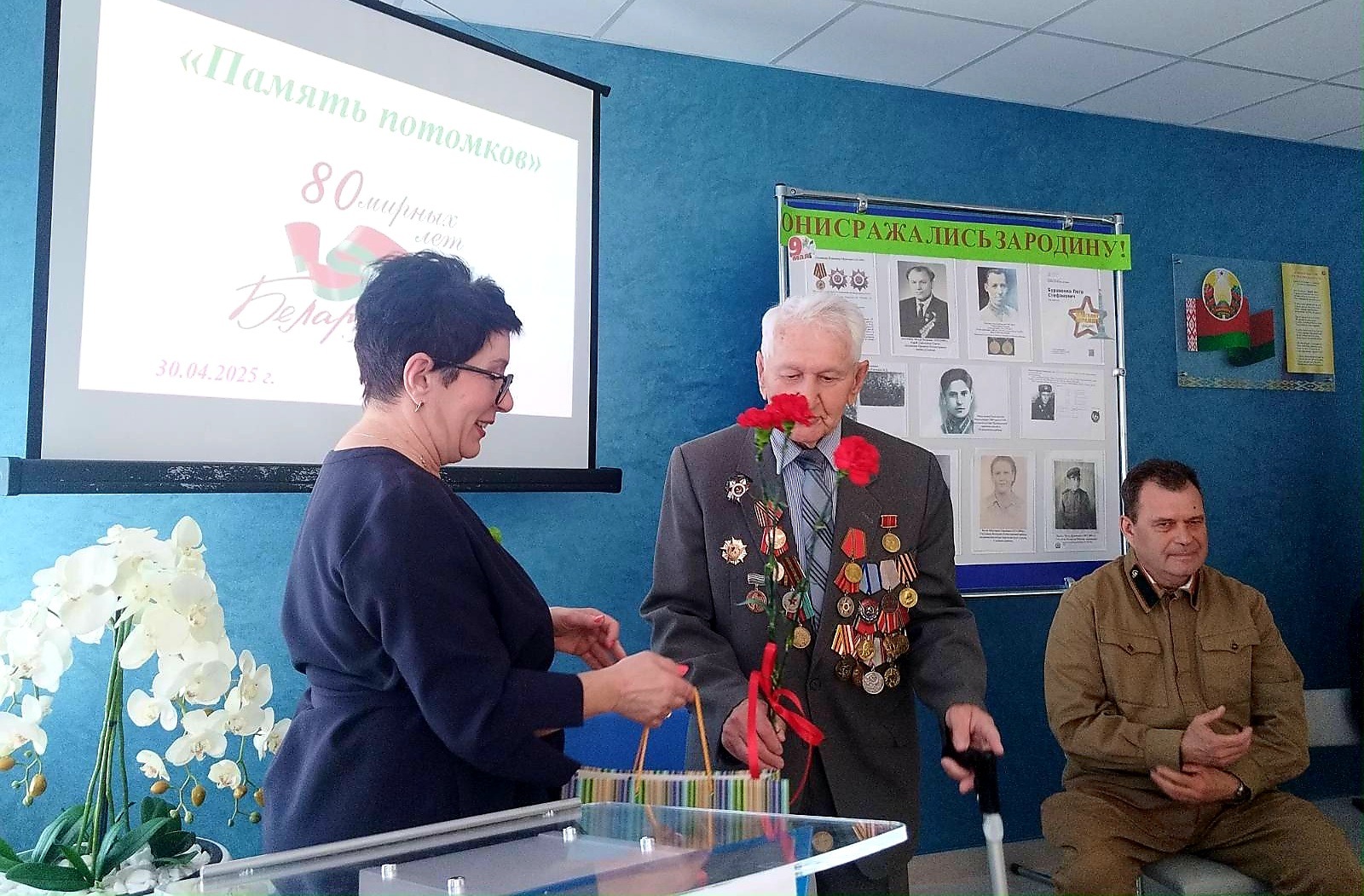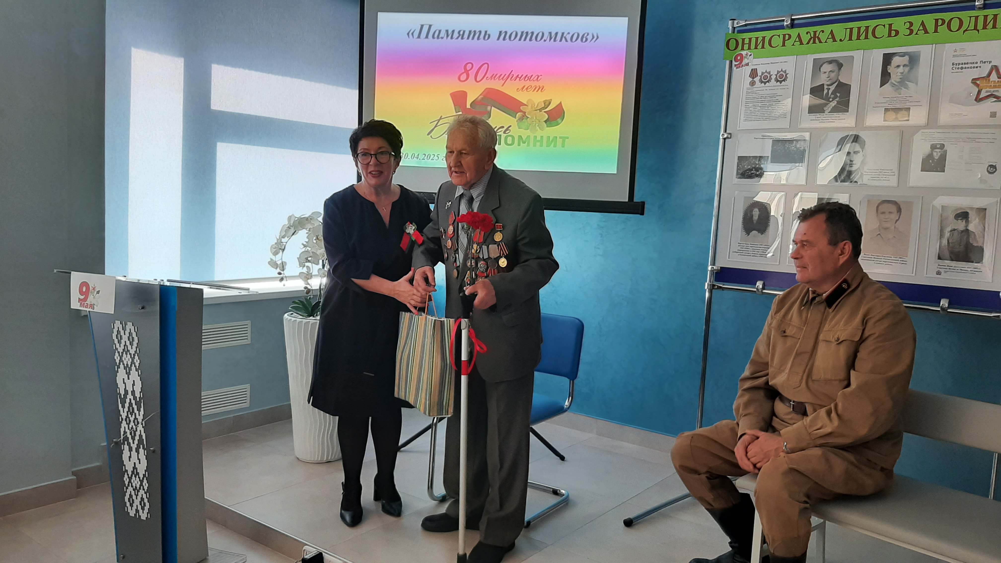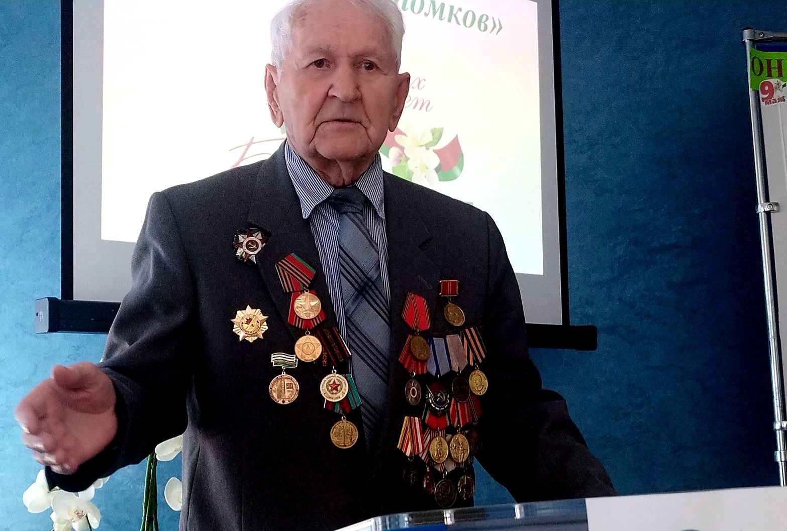 На мероприятие был приглашен Ветеран Великой Отечественной войны – Леонид Александрович Еремин, который многое рассказал о тех долгих днях тяжёлой кровопролитной войны, о солдатских горестях и радостях, о жизни в окопах, о праздновании Великой Победы 9 мая 1945 года, послевоенных годах и восстановлении города-героя Минска.