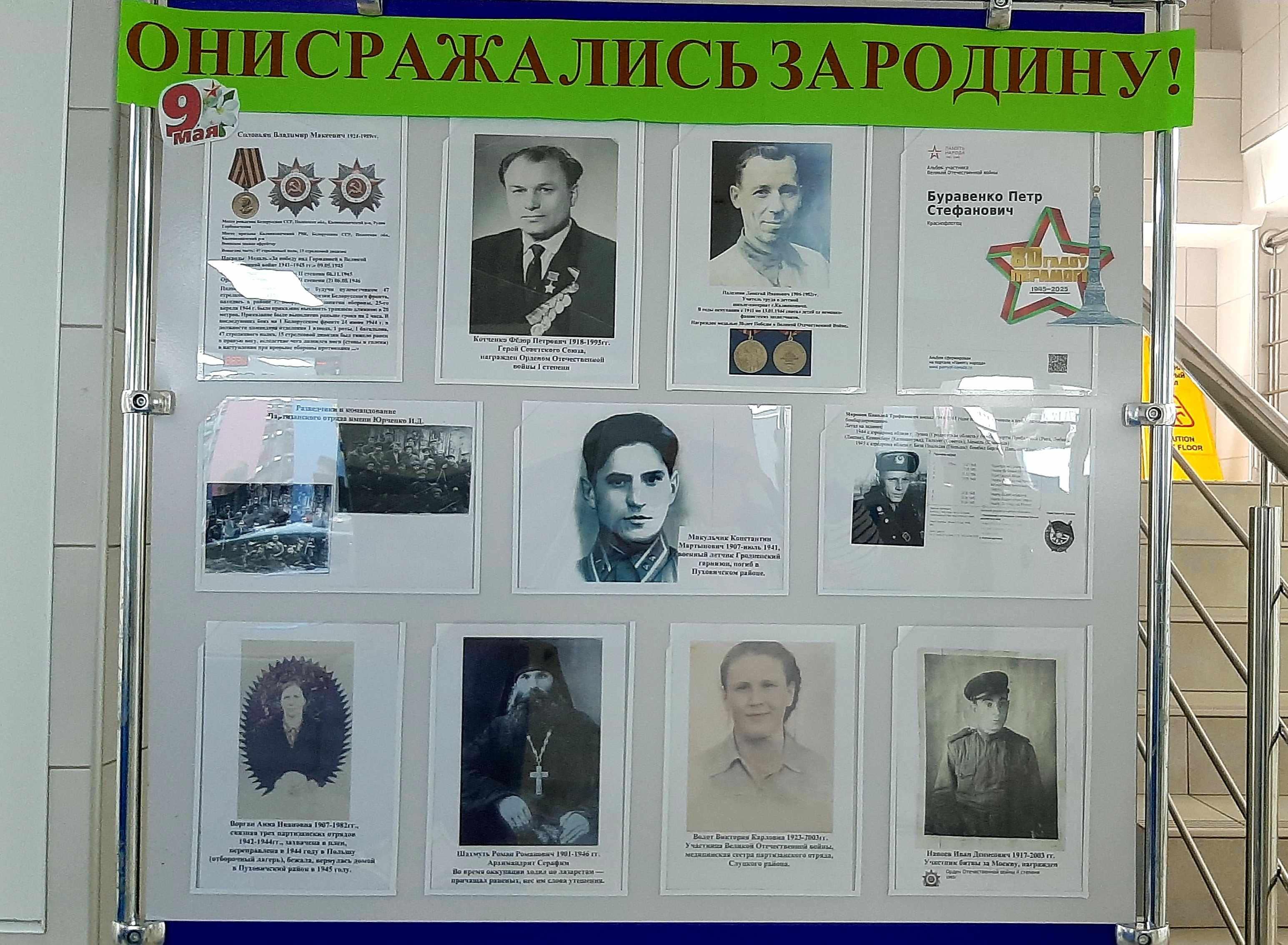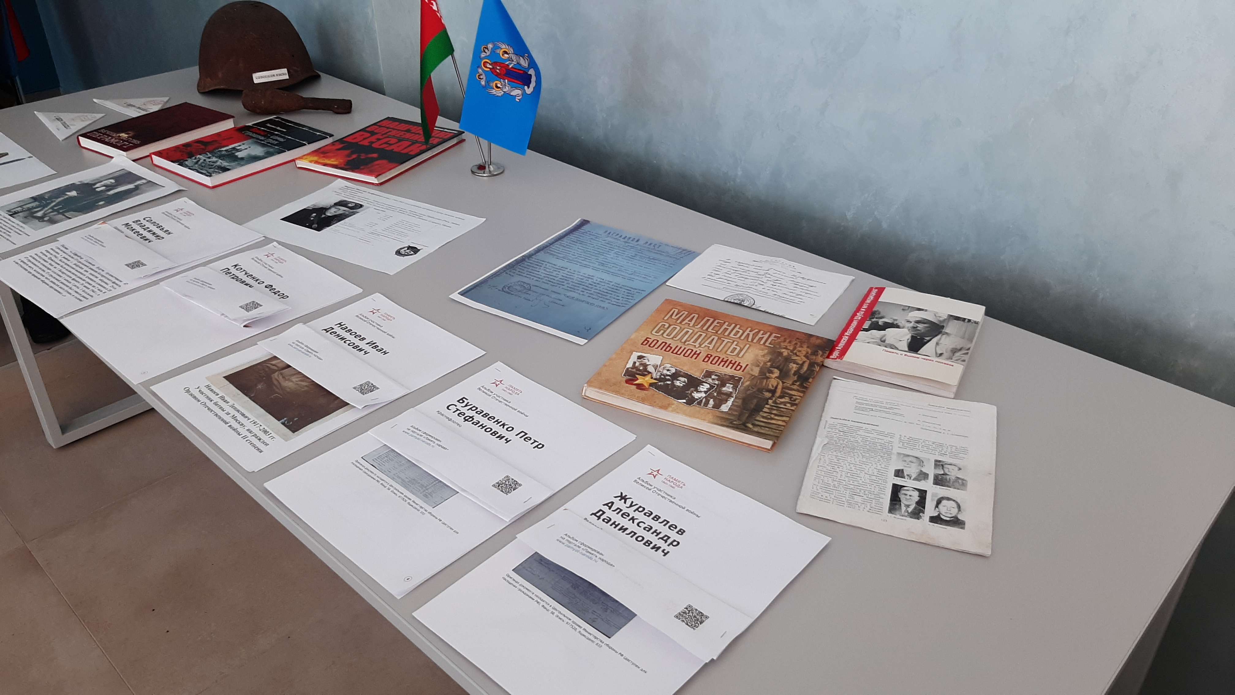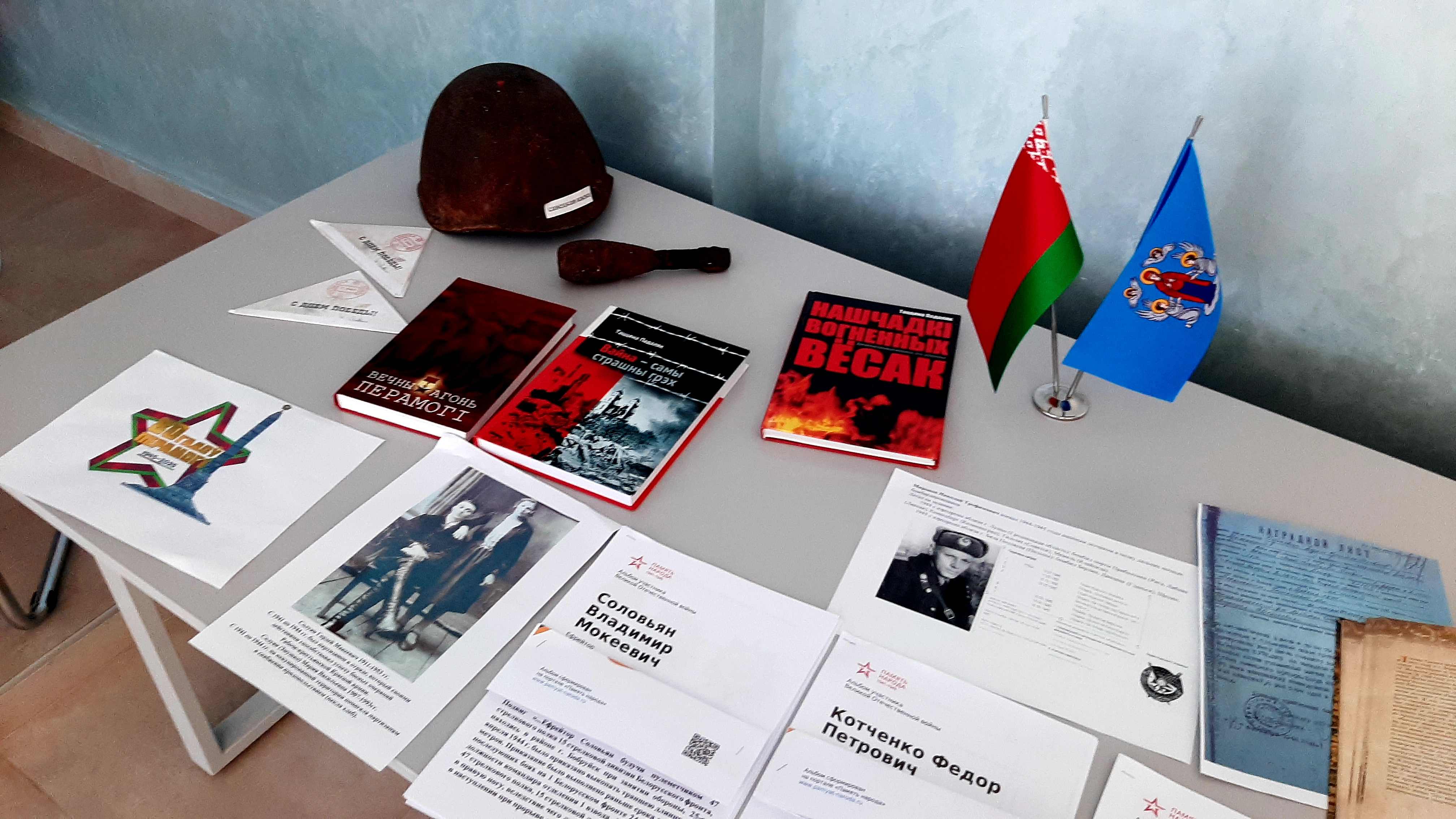 Также была подготовлена тематическая экспозиция, выставка «Они сражались за Родину!», фотографии героев, копии исторических документов о подвигах и наградах наших близких, книги о героях войны, сожжённых деревнях, военные экспонаты - немые свидетели тяжёлых боёв.