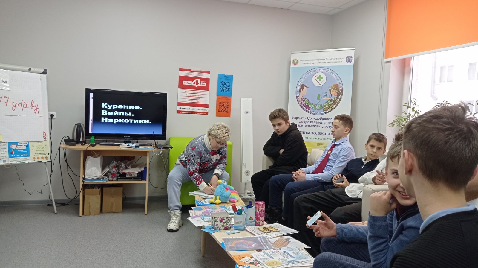 В центре, дружественном подросткам «Ювентус» состоялась встреча с учащимися СШ № 34. Психолог Гирис Татьяна Васильевна провела мероприятие в целях профилактики табакокурения, употребления вейпов и наркотических веществ. Ребята узнали, в чём отличия вейпов и обычных сигарет. Например, при испарении никотиносодержащих жидкостей не выделяются яды, канцерогены и угарный газ, которые образуются при горении табака. Зато выделяется формальдегид, с которым работают патологоанатомы в моргах…