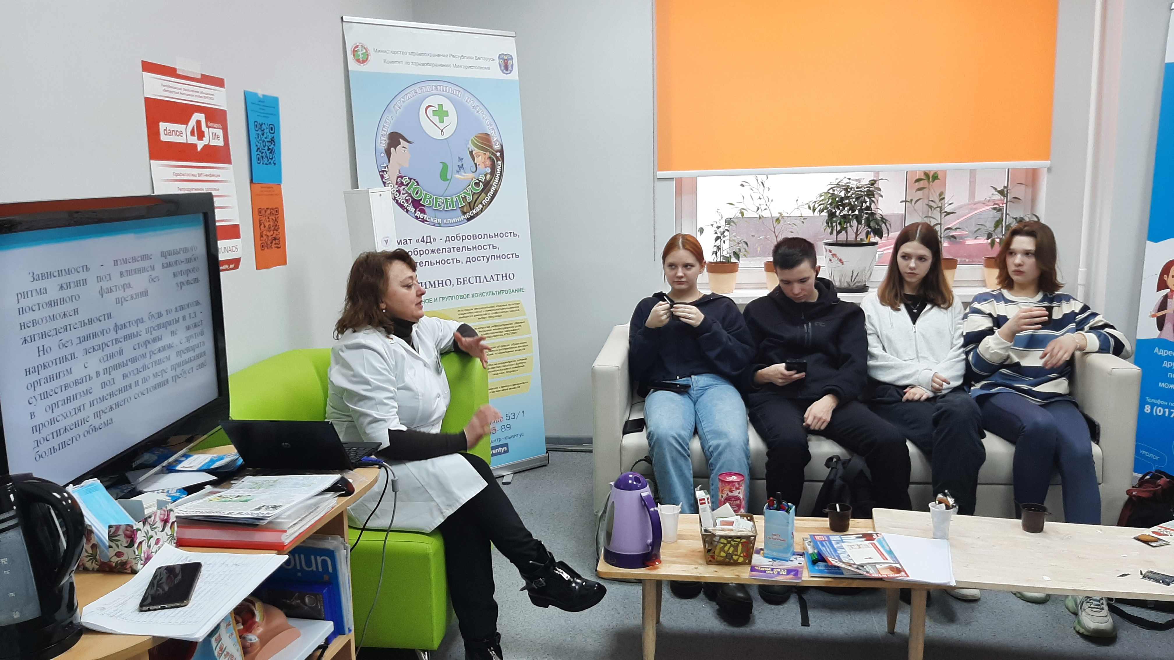 Врач по медицинской профилактике Палазник И.А. рассказала о социальных последствиях и осложнениях с законом при употреблении ПАВ, о эпидситуации, выявлении и диагностике ВИЧ-инфекции в Республике Беларусь, показала как провести самотестирование на ВИЧ по слюне.