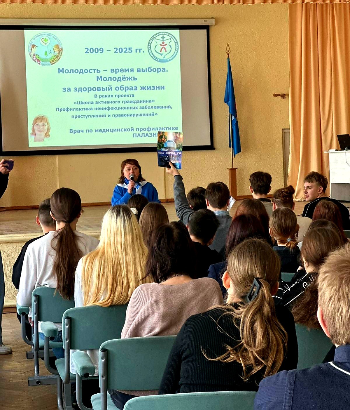 Диалоговая площадка "Молодость-время выбора. Молодёжь за здоровый образ жизни" 27.02.2025 состоялась в "Минском городском колледже полиграфии имени В.З.Хоружей", в рамках проекта "Школа Активного Гражданина" и акции "Стоп - наркотикам и ВИЧ", проекта "Минск-здоровый город", в ходе которой ребята узнали про специфику работы ЦДП "ЮВЕНТУС", профилактику потребления наркотических веществ, сохранение репродуктивного здоровья.
