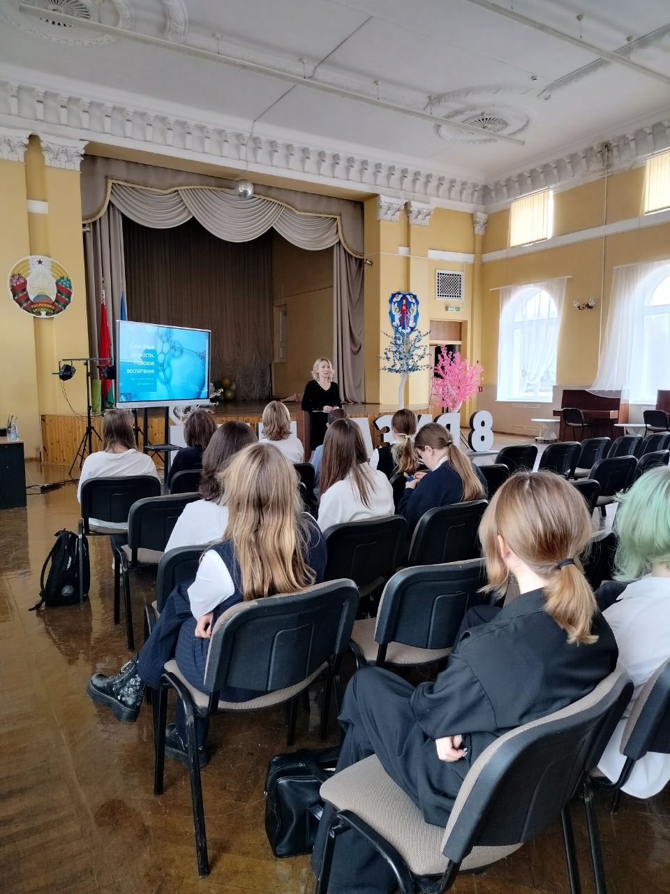 В УО "Гимназия № 8 г.Минска" 21.10.2025 года состоялось интерактивное занятие "Репродуктивное здоровье молодёжи. Профилактика раннего начала половой жизни." Учащиеся 8-9 классов получили ответы на все вопросы о строении и функционировании женской репродуктивной системы от врача-гинеколога ЦДП "Ювентус" Гурштынович В.М. Прекрасная презентация с полезной и красочной информацией была представлена подросткам, а завершилось общение в формате вопрос-ответ.