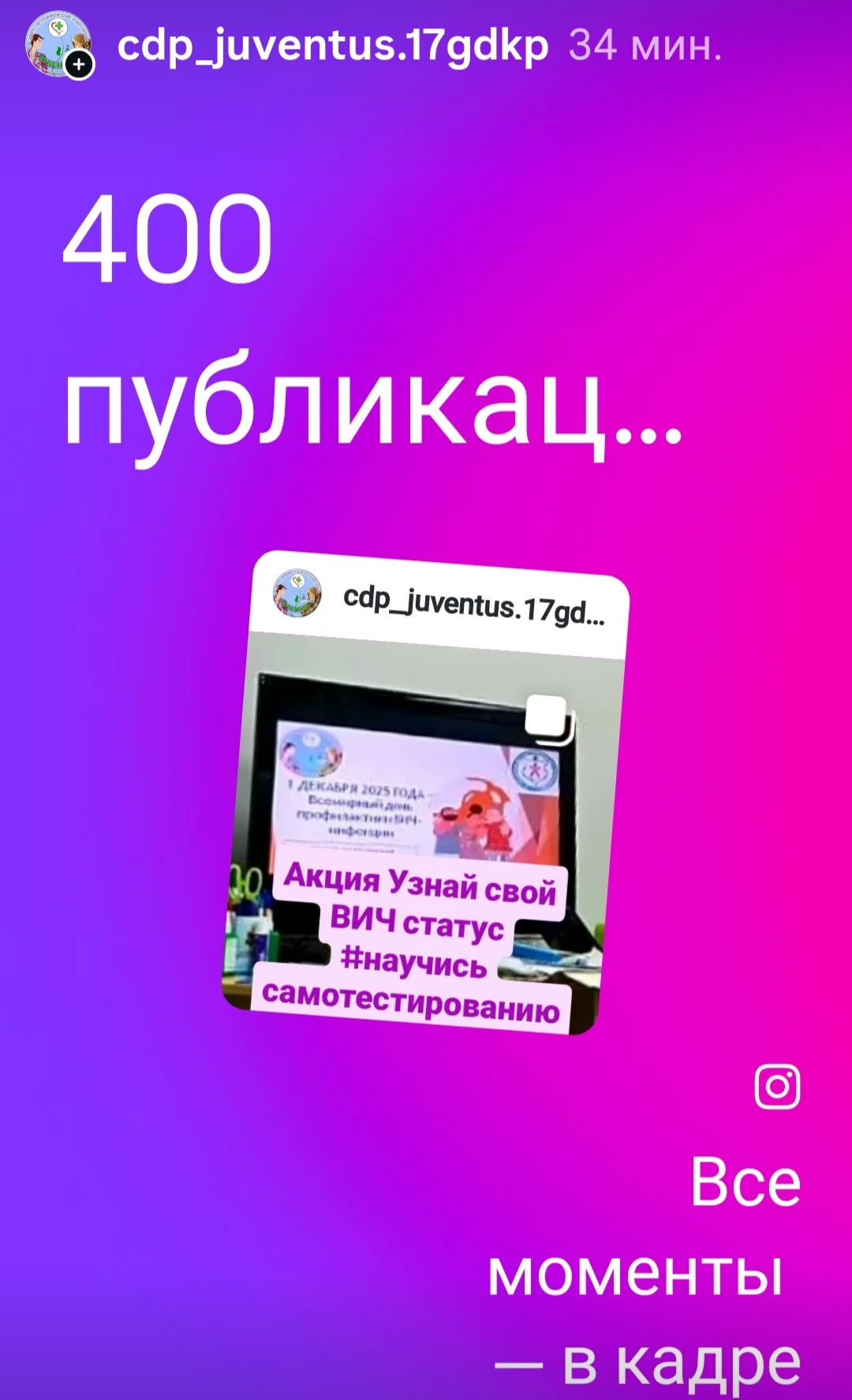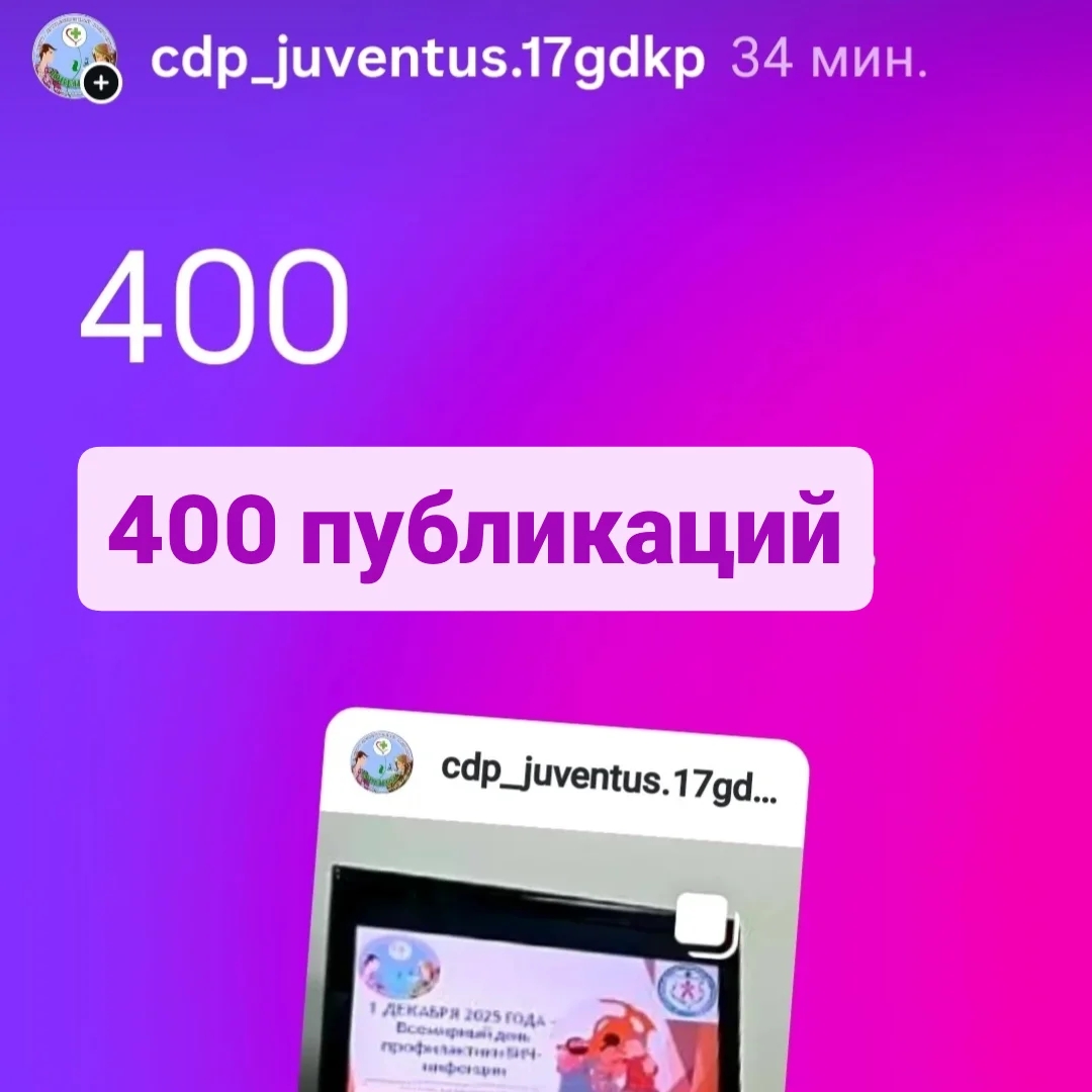 💯Приятное событие в ЦДП "ЮВЕНТУС" 400 публикаций и 250 историй, из маленьких моментов складывается история нашего центра!