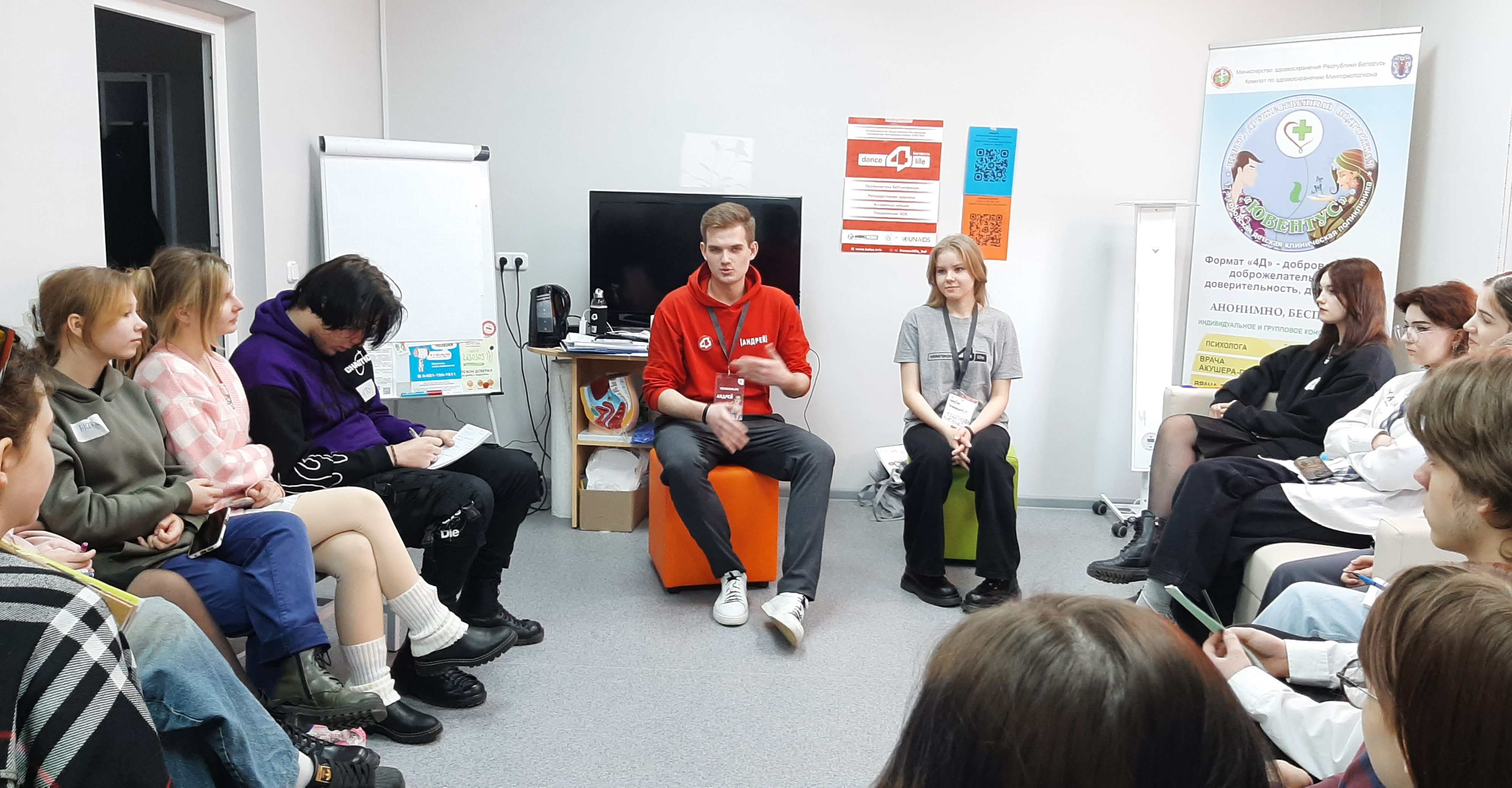 В ЦДП "ЮВЕНТУС" 15.03.2024 начался обучающий курс интерактивных занятий в рамках проекта "Dance4Life Беларусь - Путешествие ради жизни" для учащихся учреждений образования Советского района г.Минска.